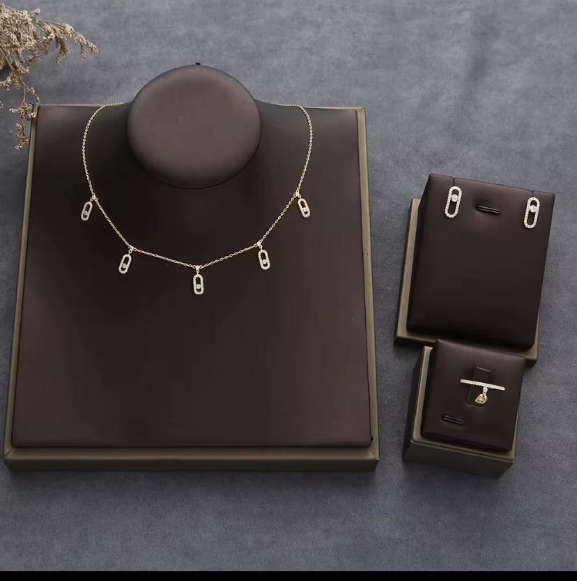 - Harmonie : Ensemble assorti (collier, boucles d’oreilles, bague, bracelet) pour une coordination parfaite.