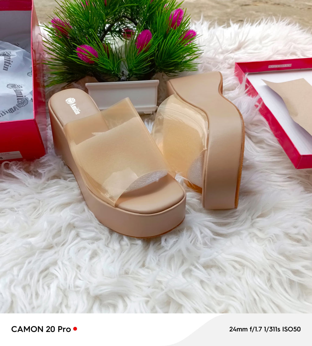 Ajoutez une touche d'élégance et de simplicité à votre garde-robe avec ces sandales compensées couleur nude. Leur bande transparente offre un look moderne et polyvalent, parfait pour toutes les occasions. Conçues pour allier confort et style, elles sont idéales pour des tenues décontractées ou sophistiquées.